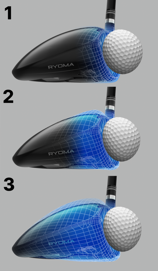 일반적인 헤드의 임팩트에서는 페이스 부분의 수축만이 발생합니다. 하지만, 맥시마 3의 획기적인 메커니즘에서는 서로 다른 부위에서 세번의 임팩트가 발생 시킵니다.